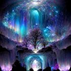 Mystical Cave with Vibrant Colors and Waterfalls of Light