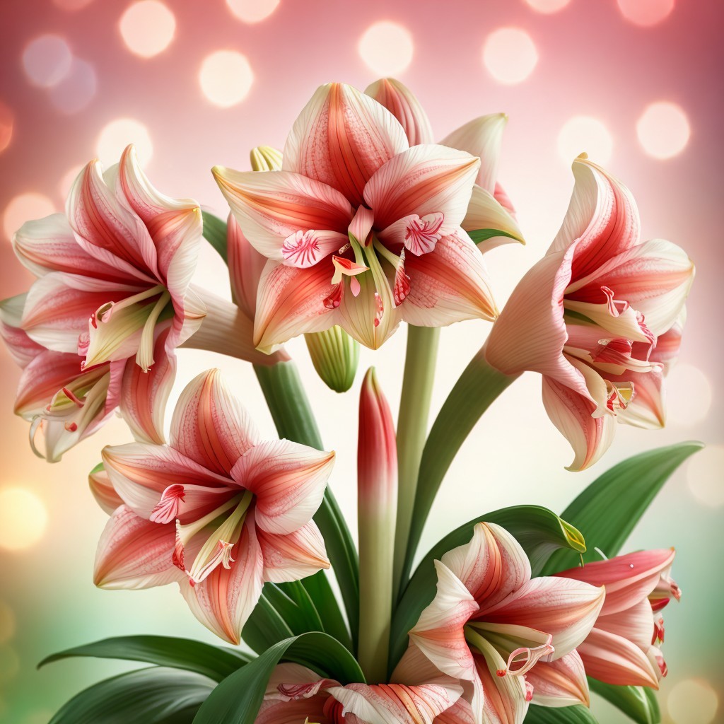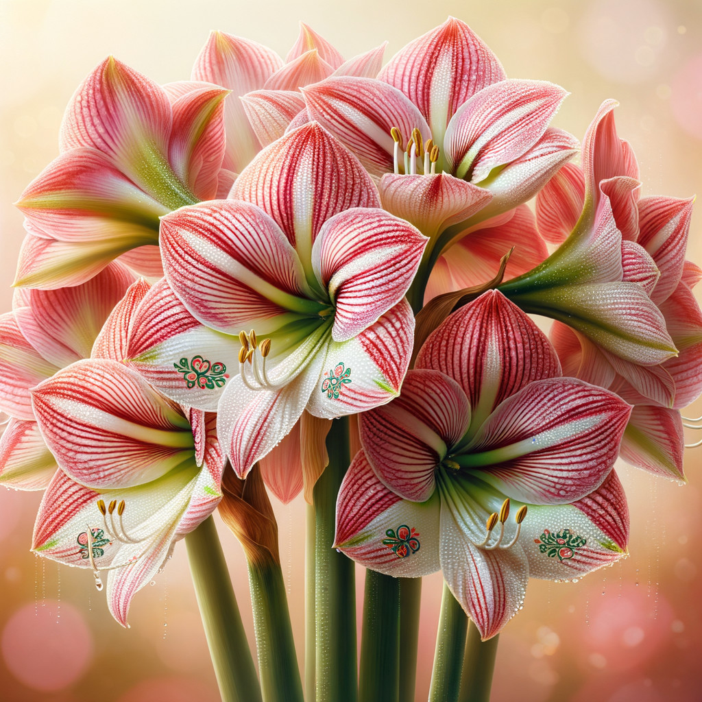 Vibrant Pink-Striped Amaryllis Flower Illustration