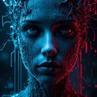 A close-up portrait of a young man submerged in water, illuminated by blue and orange lights. His expression is intense, with water droplets and light reflections creating an ethereal effect.