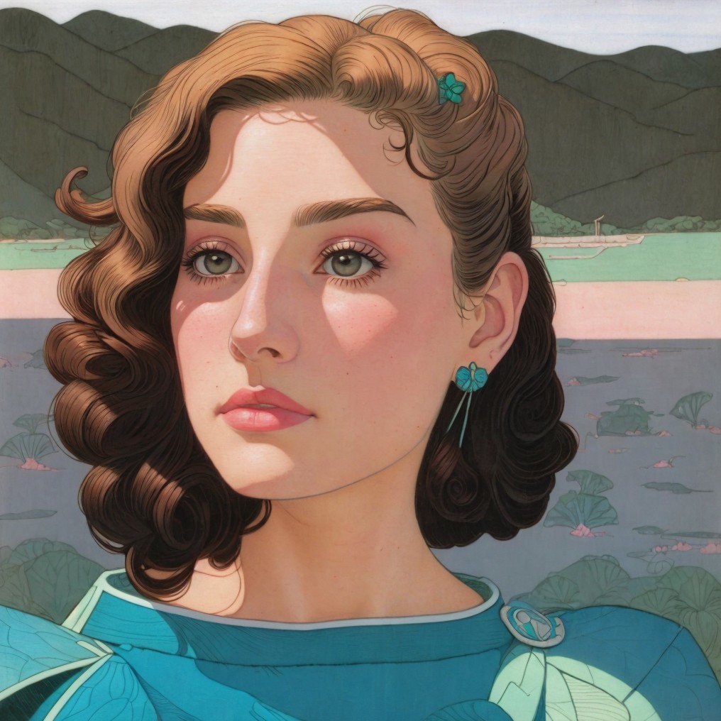 beautiful teenage temptress, close-up, woodblock print, colored line drawing,tiny lines, pastel colors, marvel comics art, styles of Georgia O'Keefe, Henry Darger, Geof Darrow, harrison fisher, William Timlin, Leonora Carrington and Overton Loyd, stylized curly hairstyle, perfect handsface, fauvistic, synthetic, occult, american gothic 1.3, auracore, anglo gothic 1.7, octane render illustration, dethereal, hues ,gothical, grain, serene, somber, sore, Schreger lines1.3, radiance, divisionism, radiance, cottagegore 1.7, octane render illustration, anisotropic filtering 1.7, dynamic lighting 1.2, colored line drawing, style is reminiscent of comic book art, raytraced shadows, ethereal, abstract, coherent, fauvistic, ambient occlusion 1.5, shadow mapping 1.3, wavery texture patchwork 1.8, frilly details, brushstroke fields, soft delicate coloring, , triadic color scheme beige bkue mauve, dreamy, poster art, stylized illustration 1.5, dynamic lighting from top, dreamscape, traumacore 1.9, concept art, esoteric essence, perfect handsface, cel-shaded illustration by Leonora Carrington, background art by Eric Lacombe & by Endre Penovac & by Overton Loyd, perpetual naive art, super wide lens, exaggerated, blouse grotesquely shaped, proportioned, overall composition artistically shaped by Basil Wolverton and by Susan Seddon Boulet, colorful vectors, glossy lighting, inkpunk 1.8, modern cheerful surrealism