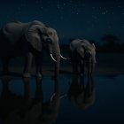 Elephants by a Waterhole Under a Starry Sky