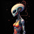 A surreal figure with a large mushroom cap for a head holds a smaller red and white mushroom. The dark background features stars, creating an otherworldly, whimsical atmosphere.