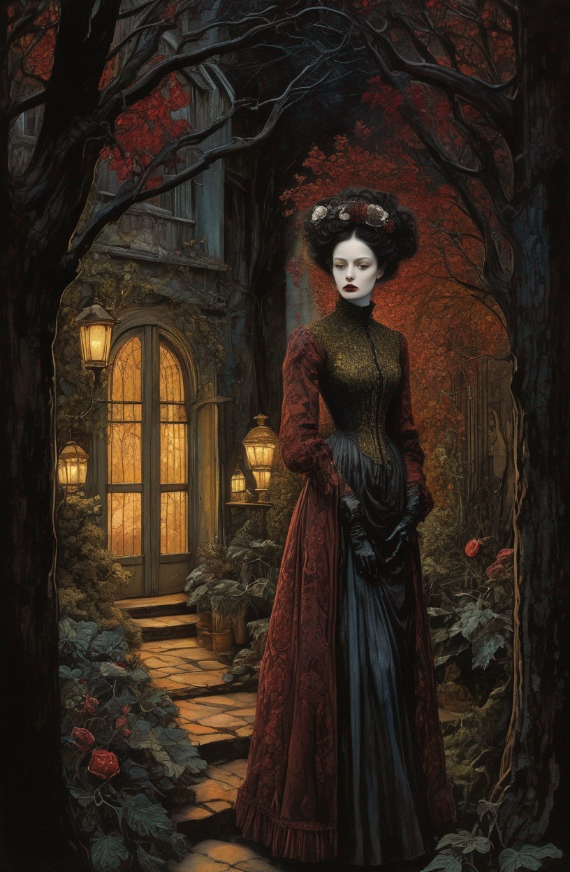 Oh, how wild a night and she's dressed in moonlight - in her secret garden colors kale, gold, rust, burgundy, black.