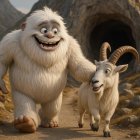 A funny, adorable yeti herds a mountain goat. The goat is funny too, and seems to get along well with the yeti, and together they set off from the yeti's cave in the high mountains...