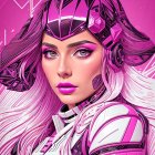 Prompt: Feminine futuristic foampunk portrait, stylized female headshot blending abstract sci-fi elements with bold outlining with naive art featuring geometrical 3D effects, linocut by Brock Hofer, black brushstrokes adding depth, dyed by Man Ray, flowing hair illusion with grey and dark streaks, encoustic line-art, several textured layers, headshot reminiscent of Lawrence Schwinger and Overton Loyd, female diva, line-art, HD quality, stylized rendering, traumacore 1.9, foampunk 1.5, subtle coloring 1.9, comic book art Infused with Gothic pen and ink details, diffusion, displacement mapping, dendritic structures chiseled in abstract linework, plasticity 1.6, complexion1.2, otherworldliness, half-lit pores, fine lines, natural painterly effects, visible dotted skin texture, audacious, brazen coloring, serene, bold outlines, presumptuous imaginative absurdism, detailed neck and throat, strong gradient pink inking colors, warm background, airbrushed painture reminiscent of Leonora Carrington and Ed Binkley merged with stylized collagraphy inspired by Stan Lee's comic book art, tesselated, tints in red gradients, multi-layered composition, subsurface scattering 1.4, raytraced shadows 1.8, divisionism, micro-level intricacy, parallax occlusion 1.3, large-scale complexity, colorful line-art by William Bradley, several linework patterns, otherworldly, 5 layers of dof, flowing line-art by William Bradley, hues by Ho Baron and Ed Binkley, warm coloring, dynamic lighting 1.3, intricate, catenaries, delicate, revealing, lascivous, divisionism, magical atmosphere, intricate bas-relief effects, blurred background, contoured, dyed, debeh, bokeh, dof, lavish, unique, warm coloring with ink lines over watercolor effects, tesselated, stylized, watercoloring techniques, tousled, overexposed, brightness 1.3, pen and ink, posing, motility, quillling, accentuated with crisp quality. tribal complementary colored patterns, thinned paint for 3D effects, acidic washes in reddis tones, casually textured layers, intricate line art utilizing watercolor and blotting quill pen techniques, gradient inking colors of warm gradient tones, squiggly Displacement mapping, parallax occlusion, alt-cinema, texture mapping, serene, colorful irregular hatching, depth and complexity, ambient occlusion 1.4 , complex layered composition in a magical fantasy style, bold black ink linework,, bidirectional reflectance distribution, phong shading, handsome sketch art approach by Lawrence Pelton, squiggly tints & hues by Ho Baron, incorporating elements of American Gothic inspired by Stan Lee's embodiment and John Buscema's impossible light transitions, emulsion lifts, linework fcontoured, tactile feel, simplistic features, intricate detailing, warm colors as stacked lines, industrial design, sgrafitto reminiscence, parallax occlusion for structured brightness 1.5 and visible textures, quaint, fusion of geometrical styles with elements of protopunk, detailed line art to create a whimsical and psychedelic ambiance, traumacore with fantasy elements, precise execution influenced by Stan Lee and Ho Baron and William Bradley fora 1960s retro design in psychedelic style, simplistic color scheme, op-art inspired by Georges Seurat and Man Ray. Incorporate intricate patterns, neon pink details, warm 3 point lighting,