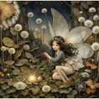 A serene young woman stands in a lush, bamboo forest, adorned with delicate flowers in her hair. She wears a flowing, elegant dress, embodying grace amidst the tranquil nature surrounding her.