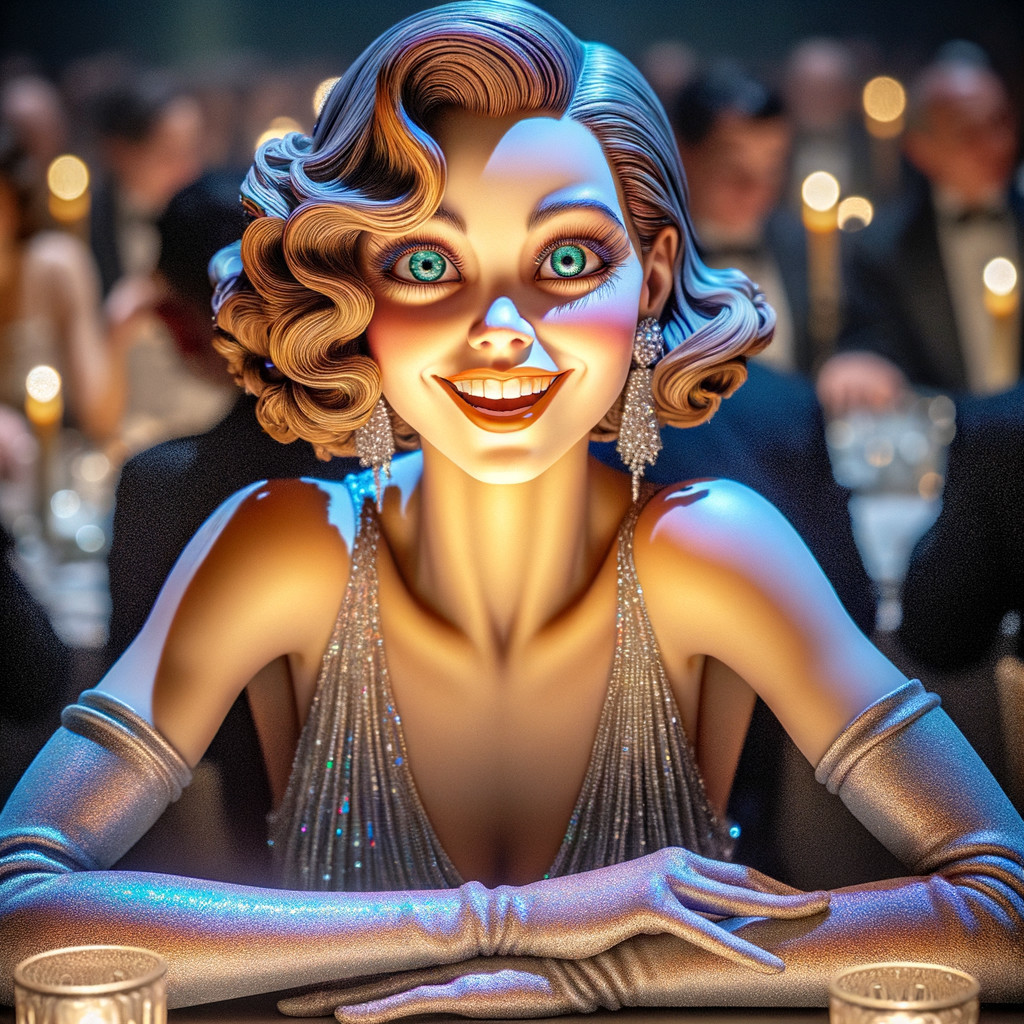 A Beautiful 1920’s Jazz woman sitting seductively at gala.
