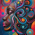 A vibrant, abstract tree dominates the canvas, with swirling colorful backgrounds of blue, orange, and purple. Leaves in hues of green, pink, and yellow add a whimsical touch to the lively scene.