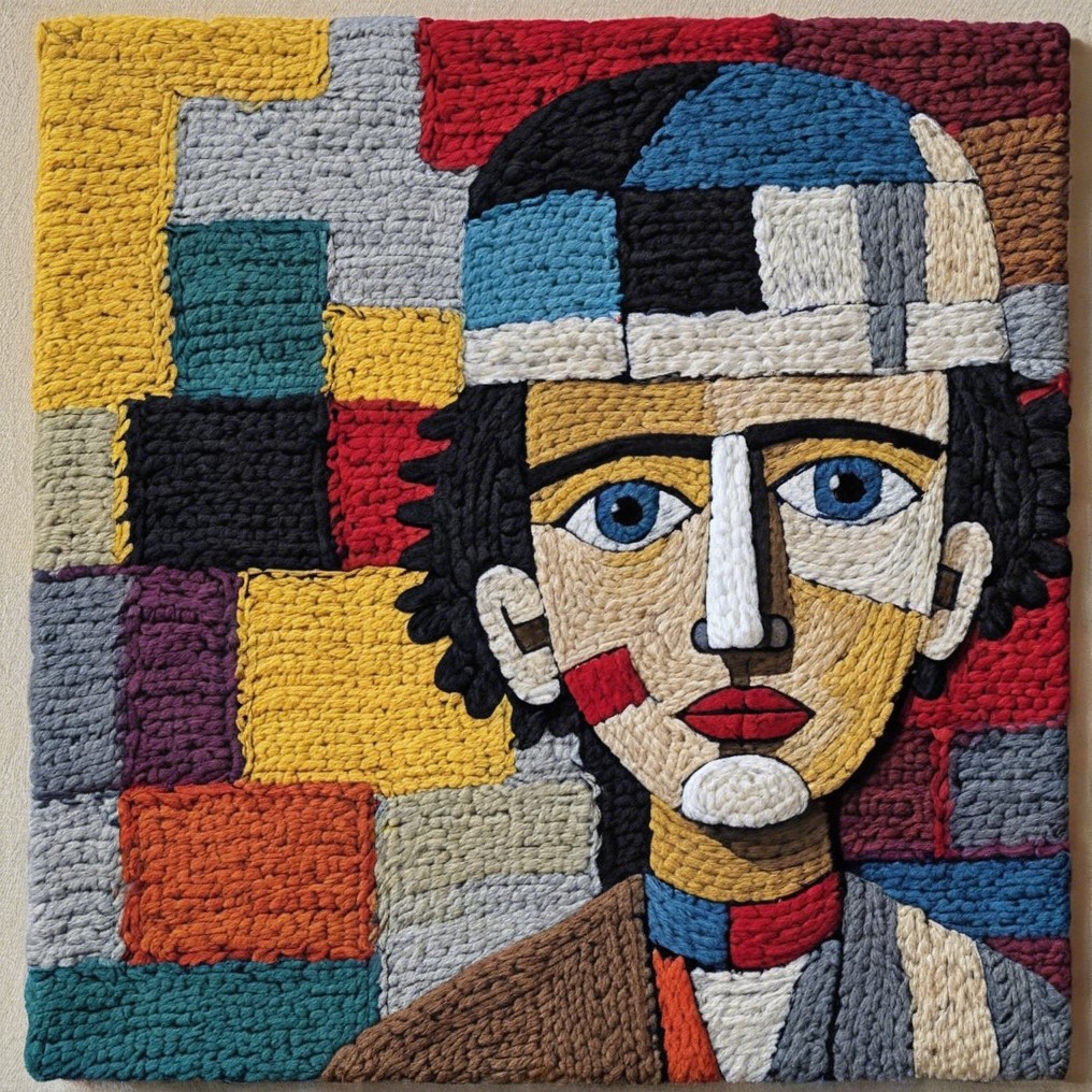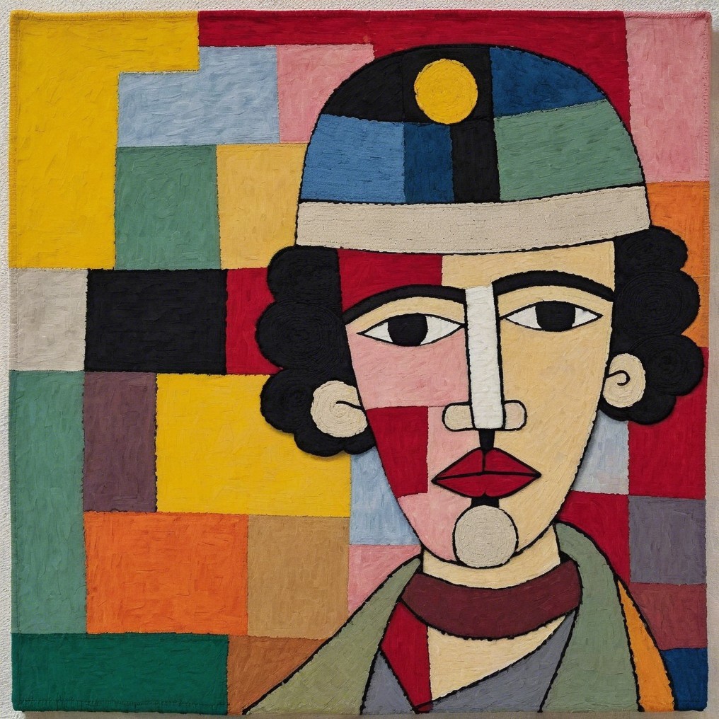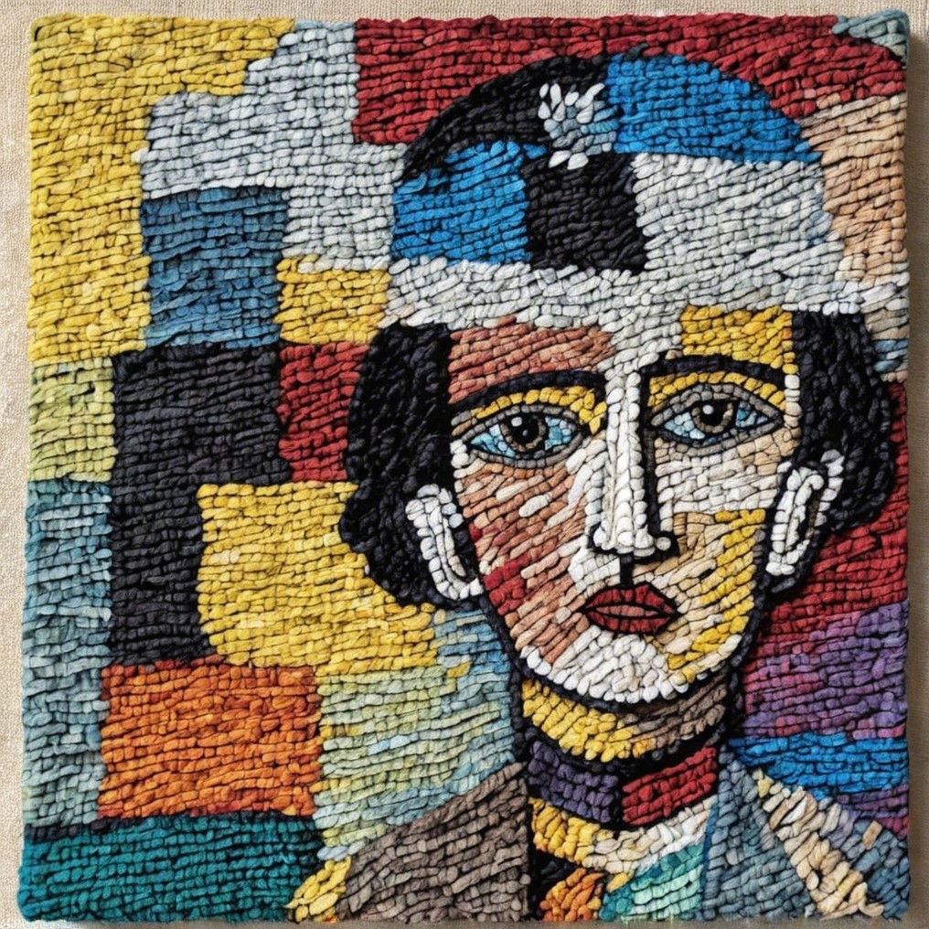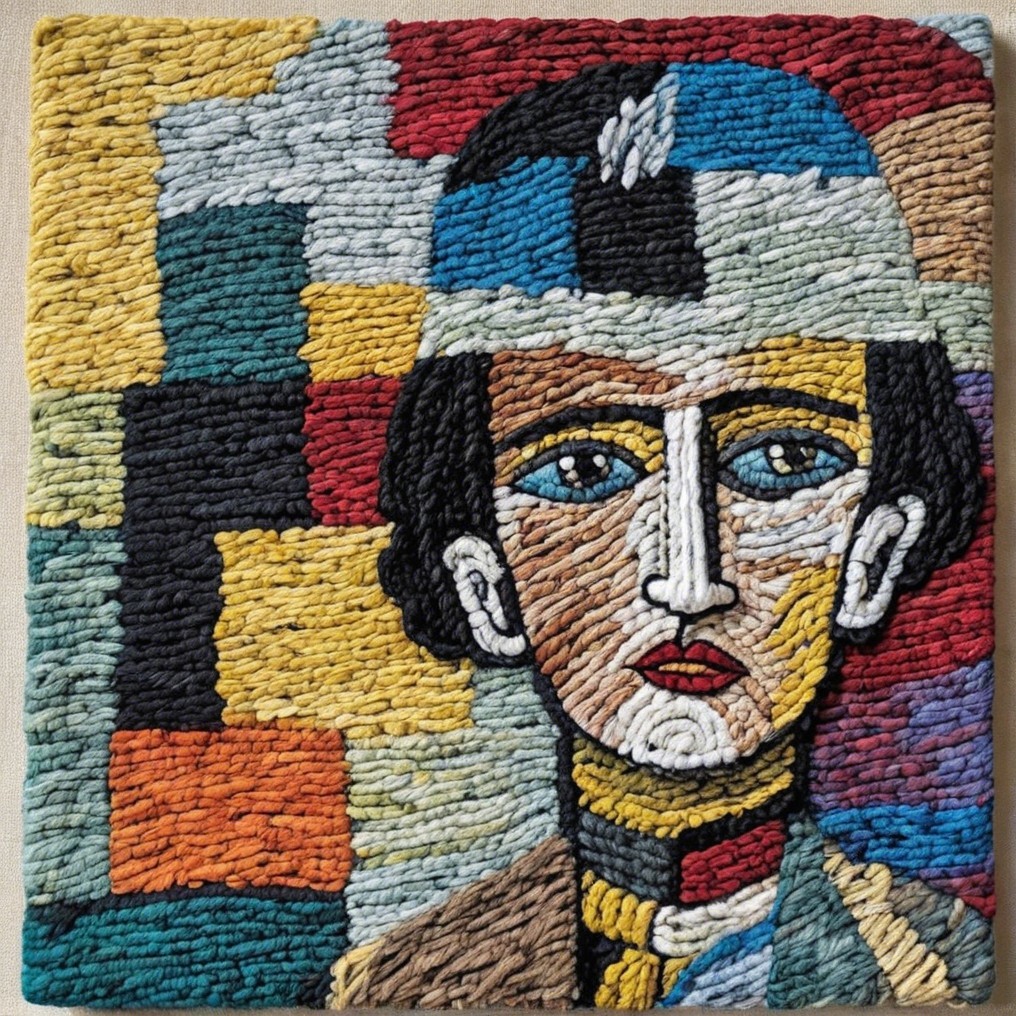 #aiart #cubisme #deepdreamgenerator #emmacha #modernirony #naiveexpressionism #textileart #wovenportrait