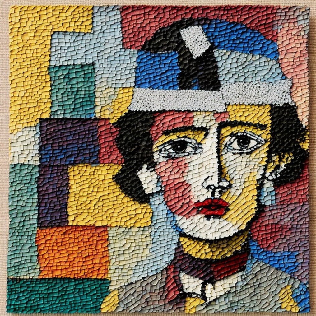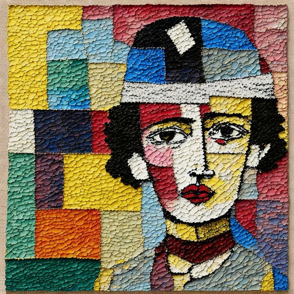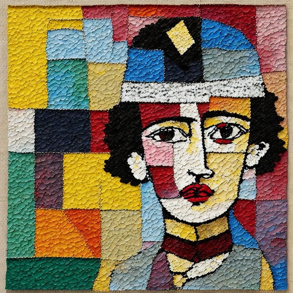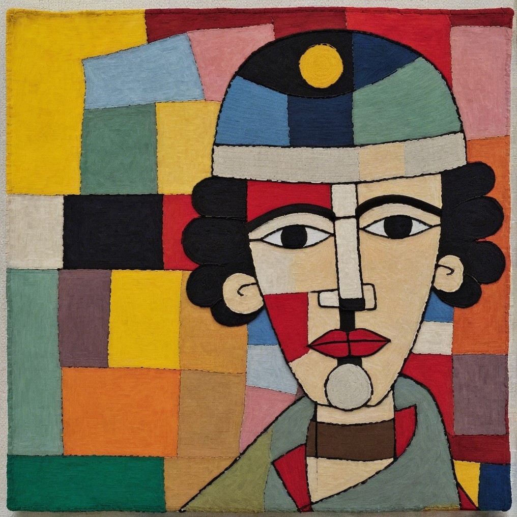 #aiart #cubisme #deepdreamgenerator #emmacha #modernirony #naiveexpressionism #textileart #wovenportrait