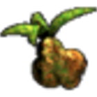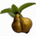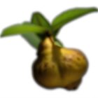 + Prompt:A small fotography of a fruit, possibly a golden potato or similar tropical produce. The fruit is depicted in shades of yellow and brown, suggesting ripeness. It has a slightly bumpy texture, with some darker shading to indicate volume and form. Emerging from the top of the fruit are green leaves, with a simplified, leaf-like shape. The leaves have a gradient of green colors, with darker green at the base and lighter green at the tips. The background is white, providing a clean contrast. The fruit is positioned slightly off-center to the right, in the upper-middle of the image. The style professional good fotography. Lighting appears to be diffused.