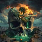 Colossal Skull on Rocky Island with Vibrant Landscape