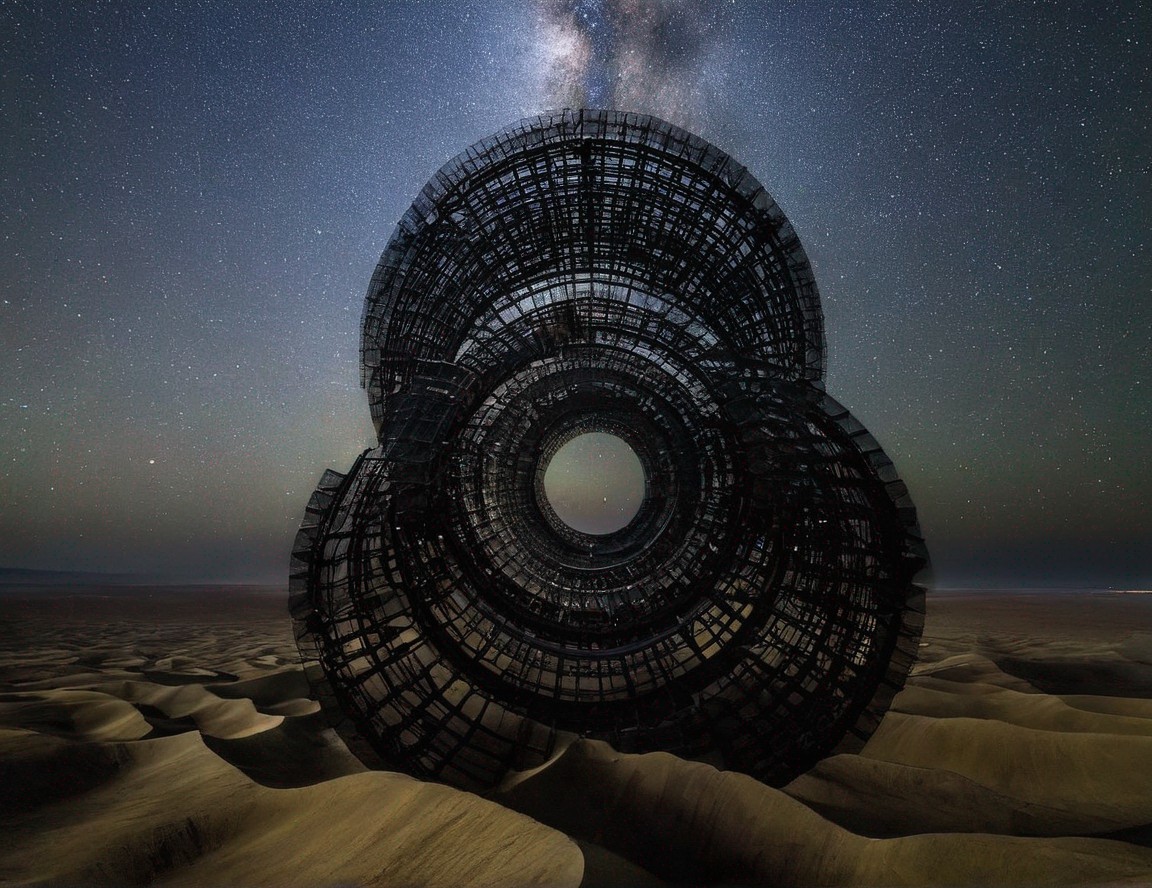 Futuristic Mechanical Orb in Starry Night Sky