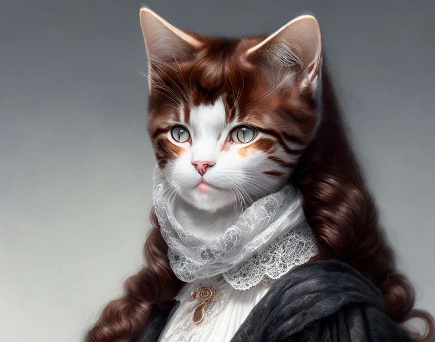 Regal Cat Portrait with Brown and White Fur