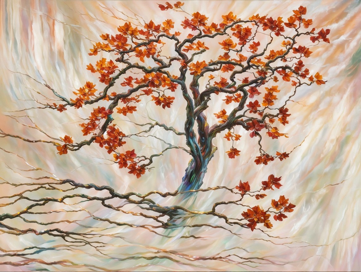 + Prompt:In a mesmerizing display of vivid colors and delicate strokes, an otherworldly bioluminescent ethereal spirit tree captivates the eye in an acrylic painting. The main subject of this ethereal artwork is a luminous spirit that emanates an ethereal glow, its translucent wings stretching out gracefully. The painting itself is a masterful creation, showcasing the artist's impeccable talent for capturing the mystical and sublime. Each brushstroke is meticulously crafted, capturing the essence of the spirit's ethereal nature, while the bioluminescent hues dance and swirl on the canvas, creating a mesmerizing spectacle. This extraordinary artwork effortlessly transports viewers to a realm of enchantment and wonder, leaving them entranced by the ethereal beauty before them.