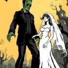 Gothic Wedding Scene with Frankenstein Groom and Bride