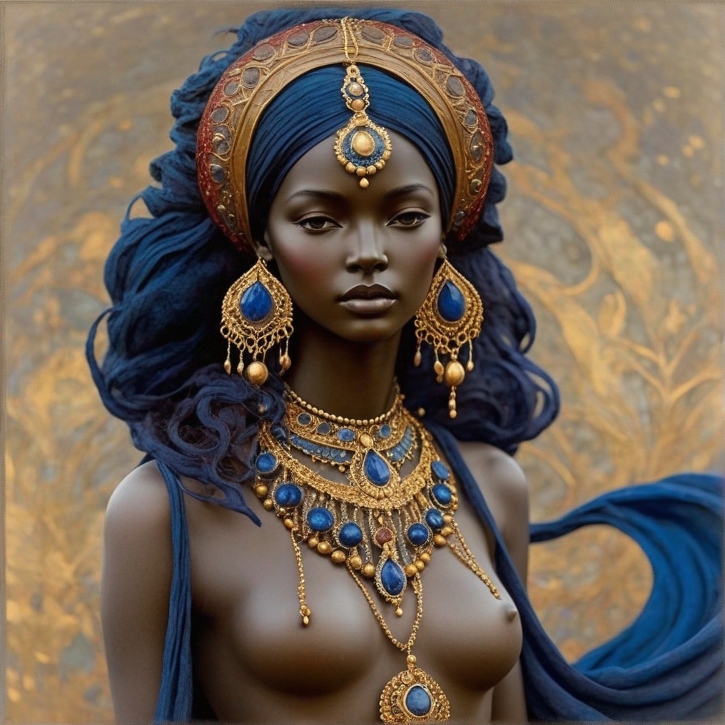 Cosmic-themed illustration of couple dancing in blue and gold attire