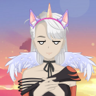 Archangel, regal figure with angelic wings and a crown holds a cup, exuding a blend of elegance and strength against a serene sunset backdrop, embodying both majesty and warmth.