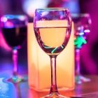 A vibrant bar scene showcases various cocktails in elegant glassware, illuminated by soft ambient lights. The colorful drinks create a festive atmosphere, inviting relaxation and enjoyment.