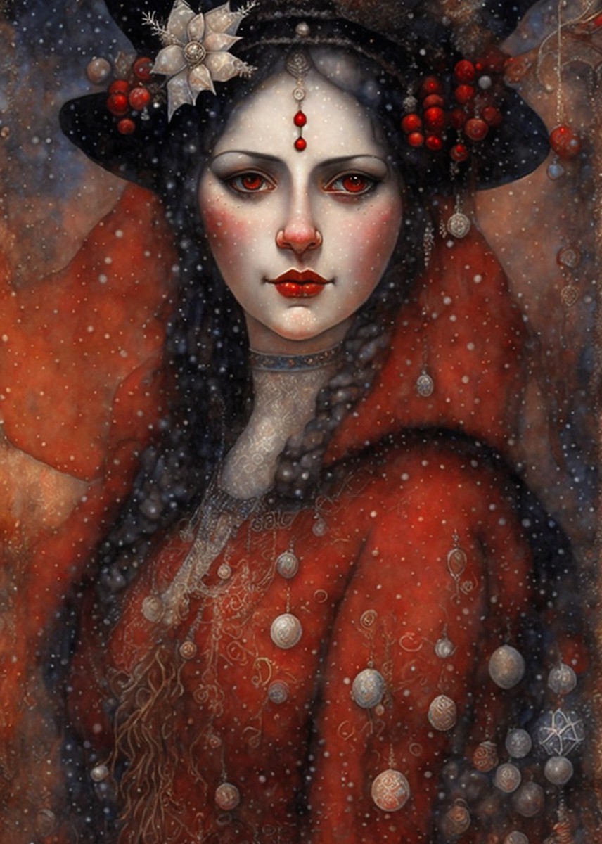 By Jamie Heiden, Daniel Merriam, Paul Klee, Karol Bak, Salvador Dali, extremely detailed, high definition, crisp quality, ultra detailed background Christmas ice maiden