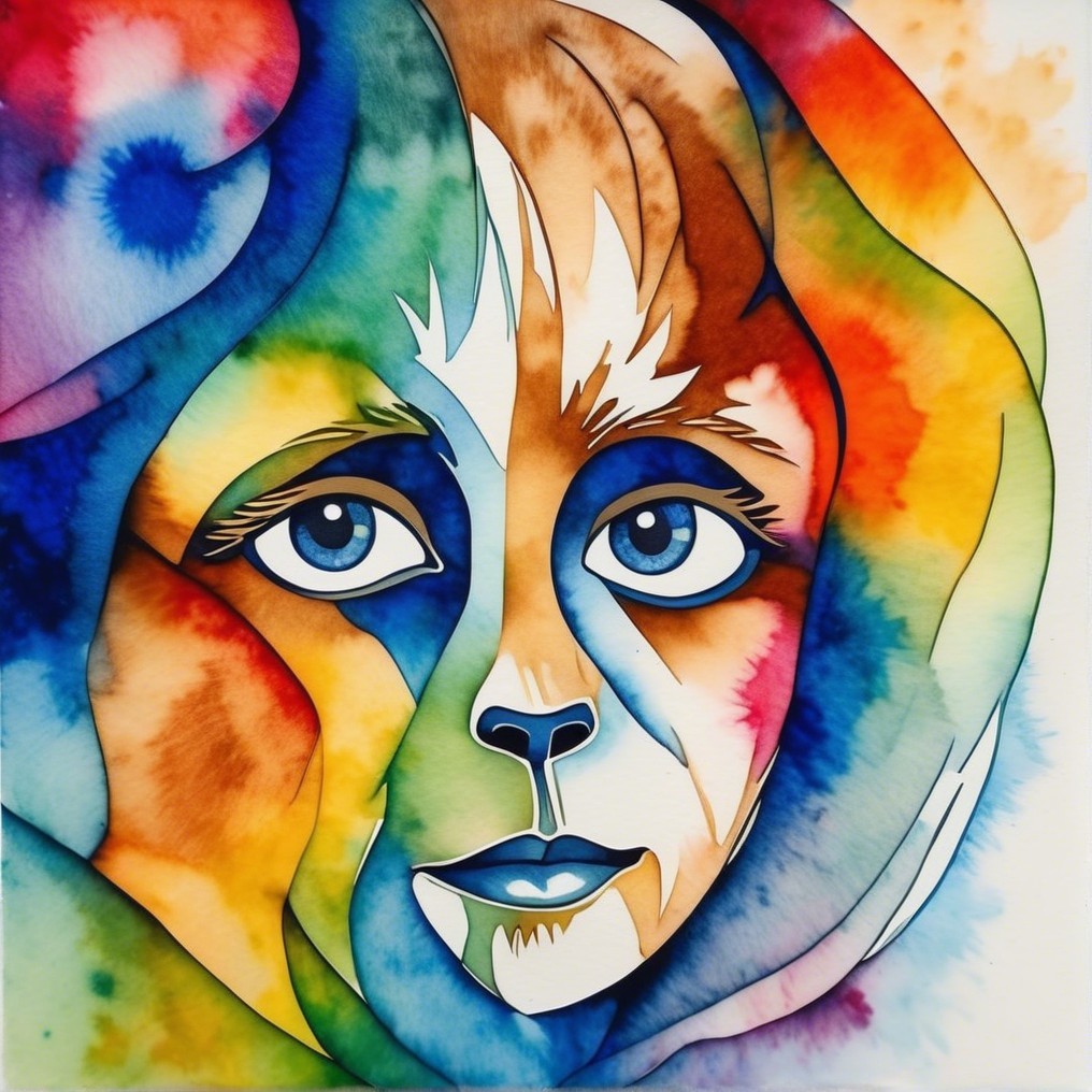 Artistic Statement: Combining hyperreal digital painting with watercolor abstraction, this piece echoes contemporary fantastical realism. It explores hybrid aesthetics that blend cinematic character study with the expressive, ethereal flow of post-digital illustration trends and ambient surrealism.