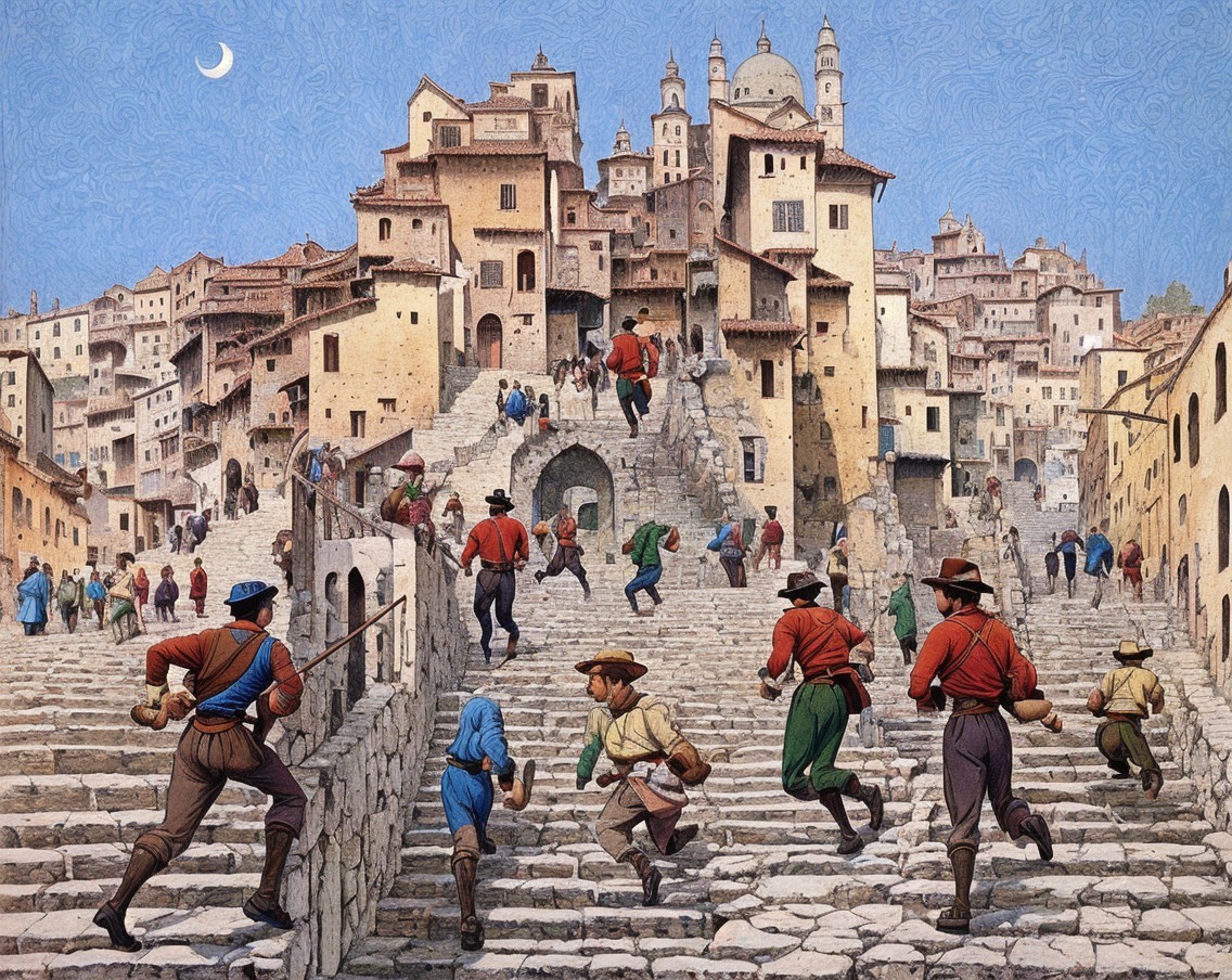 Don't worry, they're just running to the event. A famous bard will be singing, they say.