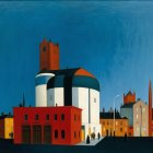 Stylized Night Scene of Town with Clock Tower and Moon