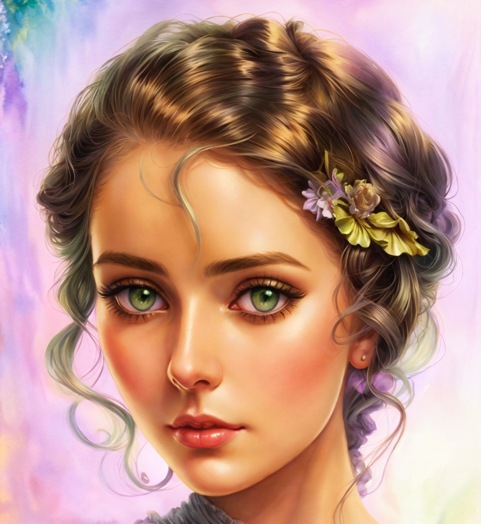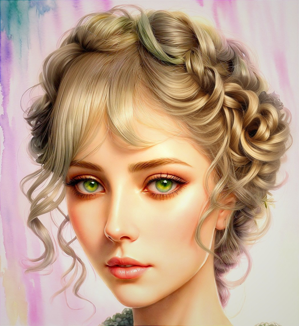watercolor painting fantasy portrait, beautiful temptress with soft pale skin, round green eyes, detailed voluminous hairdo, charcoal textures, stylized cubistic illustration 1.5, wavery watercolor hues, shades of soft ochre and grey, greenish-yellow background wuth chiaroscuro lighting. Victorian attire, crochets, contraptions, style of Margaret Keane merged with marvel comic book art illustration style, textured brushstroke fields, grunge, high contrast colors. Pastel colors. High coloring, brushed textures 1.7, 3d effects 1.8, ambient occlusion 1.5, anisotropic filtering 1.7, quaint, limited pallet, beautiful, high detail, crisp quality, mosaic, aquarel, wet on wet painting, golden ratio, folded paper style 1.6, raytraced shadows 1.8, dynamic lighting 1.7, beautiful composition 1.9,