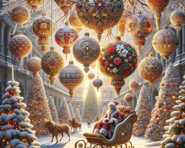 A large, expressive woman's face rises from a vibrant landscape of fruits and vegetables, with corn in her mouth. In the background, a small figure tosses food joyfully. A wooden table in the foreground is filled with dishes as four people share a whimsical meal under soft clouds and a sunset sky, blending surreal charm with playful dining.