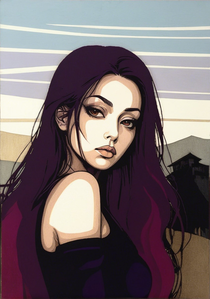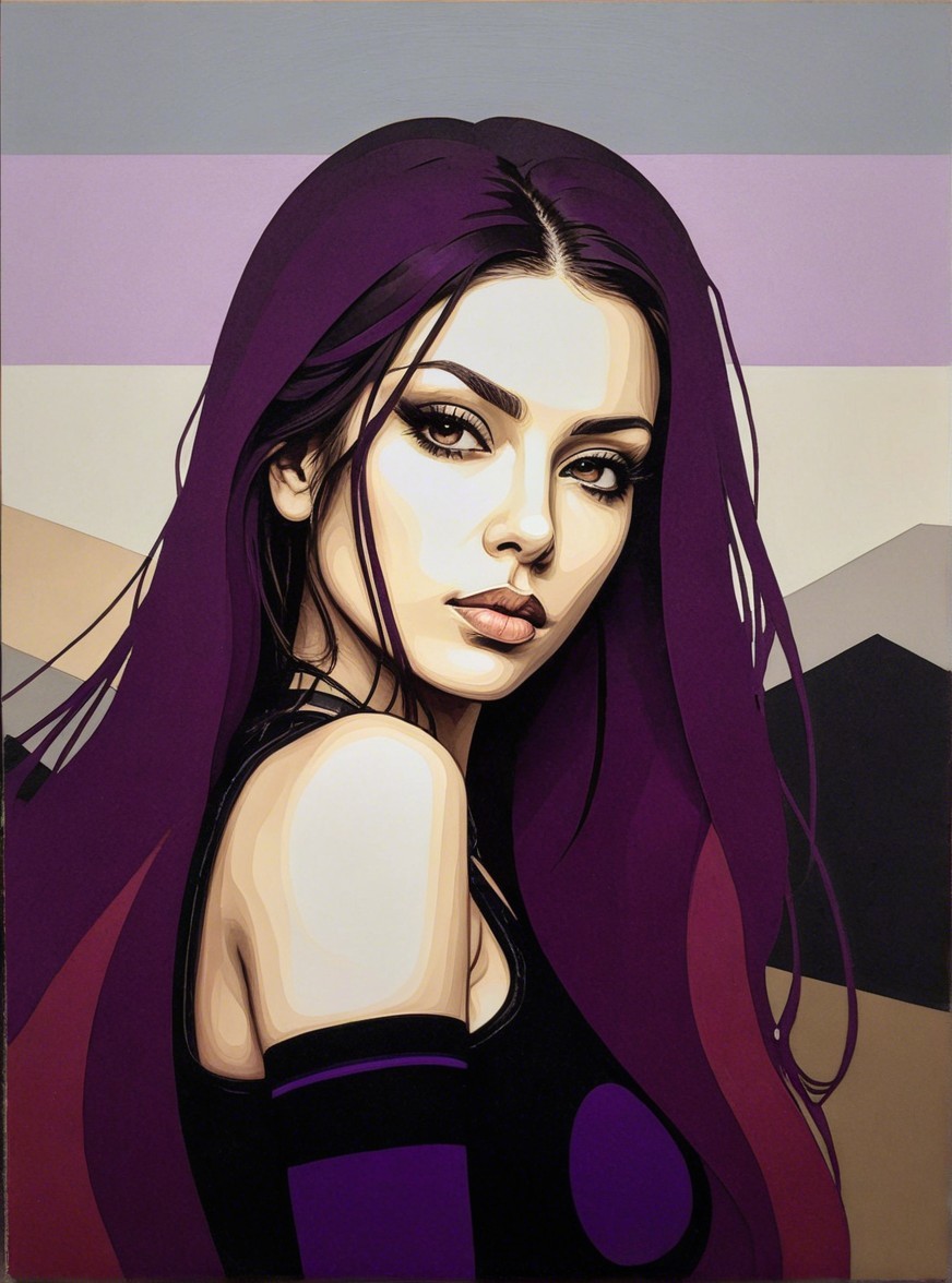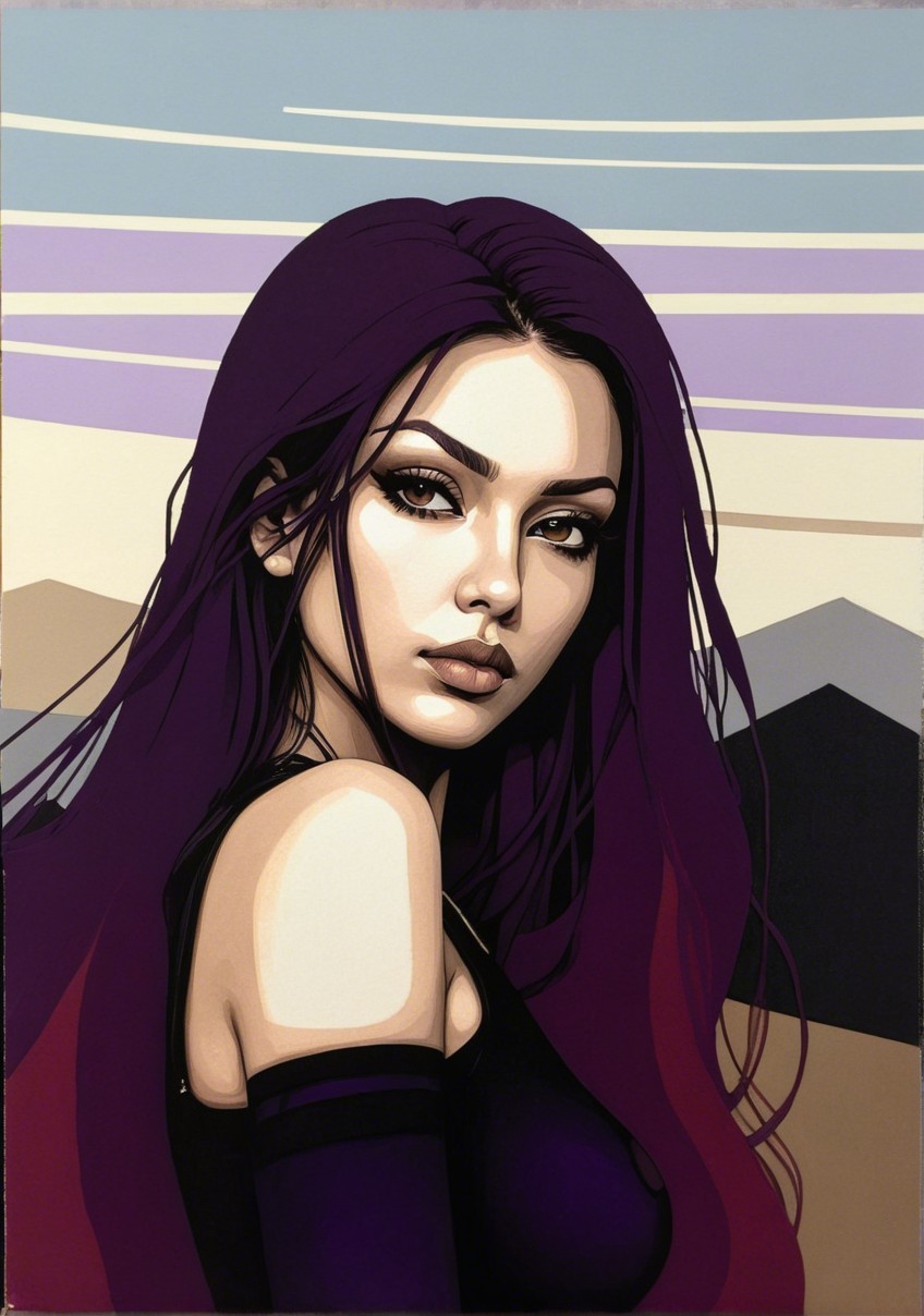 + Prompt:portrait of beautiful female mercenary, frontal view, stacked lines, (triadic color scheme brown purple beige, magical realism), dark umbra, simplisticdetails, refraction, parallax occlusion 1.5, simplistic, style of outsider art, chilling, dark macabre atmosphere, Woodblock print, tints of 3d linocut, , great depth and scale, hues by ho baron, perfect handsface, cel-shaded, 7:5) tints of boho style merged with rusticcore style, layered geometrical vector art, detailed style of patrick nagel and ho baron and Margaret Keane, intricate lineage, precise Gelsculpt 64K, tints of geometrical art, 3d effects 1.8, dynamic lighting, anisotropic filtering, brightness 1.4, visible textures, stylized illustration 1.8, vaporous auburn flares, stacked strokes, rule of thirds, ((chaotic background, 3d effects), radiance, brightness 1.9), spiritual essence, intricate background, detailed crackles, tints of Streamline_Moderne, stacked lines, stylized lineage, Schreger lines, Pastel colors 1.7, embossed strokes, raytraced shadows1.8, vibrant colors, high coloring 1.9, shadow mapping 1.9,rendered, xeroxed, octane render, cuteness, lavish, moody, synthetic, bokeh, debeh, precise gelsculpt 64k,depth of field 1.7, book cover art, tints of marvel comic book art, dreamy, soft edges, intricate lineage, overall composition by Georgia o'keffee and patrick nagel and Overton Loyd,