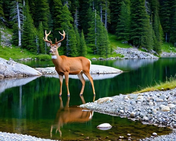 Prompt: Autumn dream, beautiful forest, colourful trees, beautiful landscape, watercolour and ink, A man and his dog sit in the clearing, under the midnight moonlight, looking out over the mystical lake.