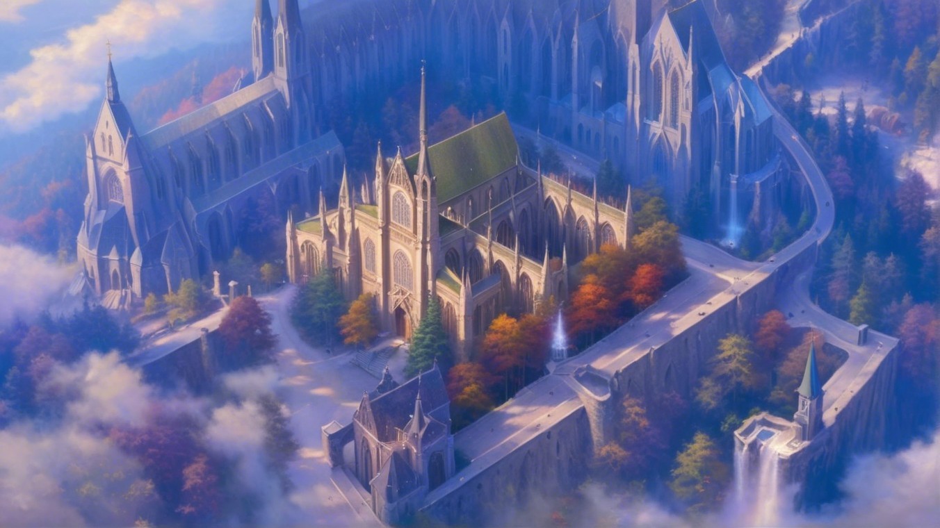 Gothic Cathedral Surrounded by Autumn Trees and Clouds