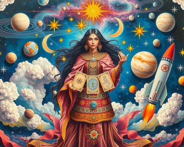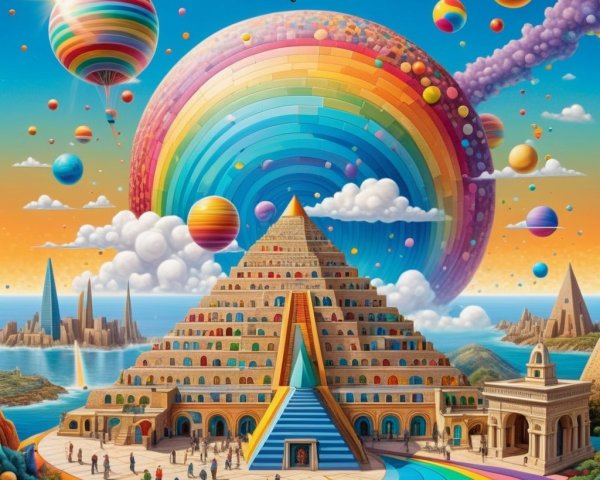 The image features a vibrant, artistic door in bold blue and red, surrounded by a whimsical wall adorned with colorful patterns, circular shapes, and abstract plants, creating a playful atmosphere.