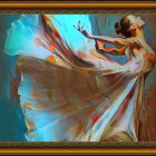 A vibrant digital artwork featuring surreal poppies and abstract foliage against an ethereal backdrop. The colors blend harmoniously, framed elegantly, evoking a dreamlike ambiance.
