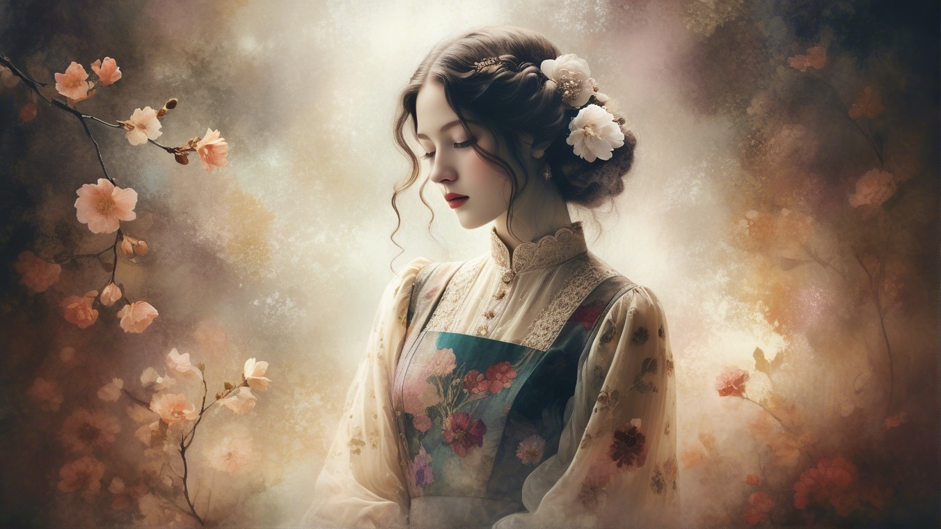 Vibrant blooming garden, radiant blossoms in full bloom, intricate floral tapestry, ethereal marble textures with shimmering iridescent hues, patchwork design blending watercolour and ink, regal imperial colour palette, Art Deco influences evident, reminiscent of Annigoni, Egon Schiele, and Botticelli, a whimsical touch akin to Catrin Welz-Stein, detailed and elegant composition, EmmAI digital painting technique highlighting seamless transitions, sharp focus on floral intricacies, concept art inspiration evident, high resolution, vivid colour palette with gold, burgundy, emerald, and sapphire tones, soft and luminous lighting enhancing the ethereal quality of the scene.
