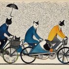 Watercolor Artwork of Cyclists in Motion with Abstract Background