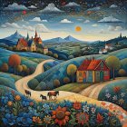 Whimsical Autumn Landscape with Charming Houses and Trees