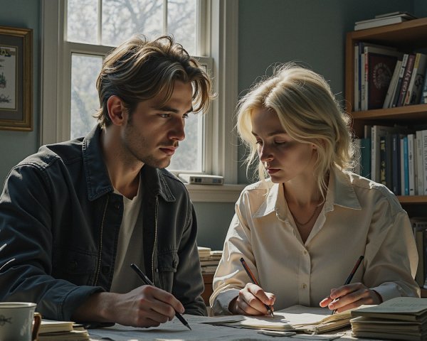 A stylish woman with blonde hair sits outdoors, wearing sunglasses and a black suit with a red tie. She exudes confidence and sophistication in a vibrant urban setting.