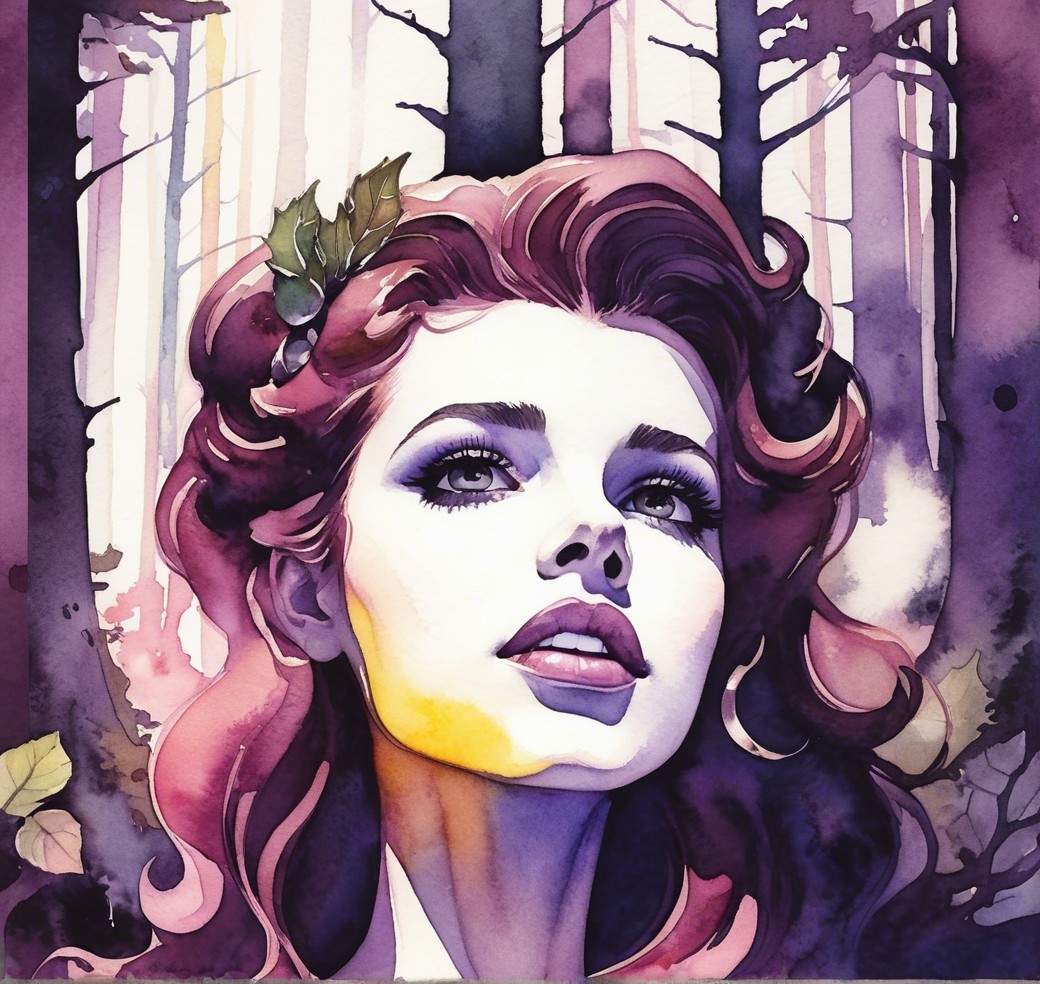 + Prompt:Watercolor and ink, stylized close-up, juvenile enchantress, stylized forestal background, stacked-up perspective, wide angled view, occult theme, mysterious, comic book art merged with abstract lineage style, Ho Baron inspiration, William Bradley lighting, gradient inking colors, at nouveau embellishment, intricate details, joyful, dystopian, stylized face, cel-shaded by Henri de Toulouse-Lautrec, zentangle influence, Bloom-Effect, subsurface scattering, textured layers, painterly elements, glossy,UHD, plasticity 1.4, HDR, blurred outlines, triadic color scheme, watercolor effect, Raytraced shadows, divisionism techniques, luminism, sfumato-effect, dreamcatching, tall and lean details, quilling, watery thinned colors, watercolor details, nuanced painterly effects, worn and rough surface, stippled, blotted, tesselated, debeh, bokeh, Haddon Sundblom hues, acrylic art techniques, oxidian hues, golden shadows, retro flair, naturalistic vibe, luminism and tonalism reference,contouring outlines by Ho Baron, vertical layout, emulsion lifts, whimsical gothic elements, ancient blurred background, angled, squiggly splash art, 3 point lighting, glowing bioluminescent aura, liminal, traumacore elements, overexposure. Foampunk features, appropriateness, accuracy, skills, hadow mapping, parallax occlusion 1.8, subsurface scattering 1.2, luminous plasticity.