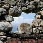 Stone Archway with Scenic Hills and Sky View