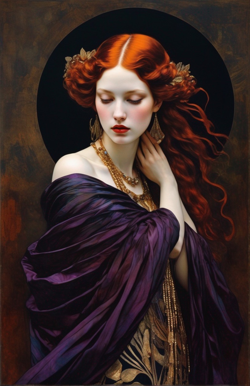Double exposure, in silk iridescent texture, Klimt paint beautiful nymph, in watercolor and ink imperial colors white gold foil detail, Raven tormenting her from above, Art Deco by Enki Bilai, Annigoni, Egon Schiele, Milo Manara, Botticelli, Catrin Welz-Stein, Jean Metzinger, Klimt, perfect eyes, perfect handsface, highly detailed, splatter, dynamic pose, dark blue background
