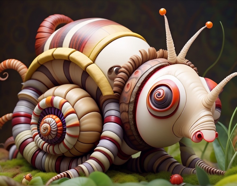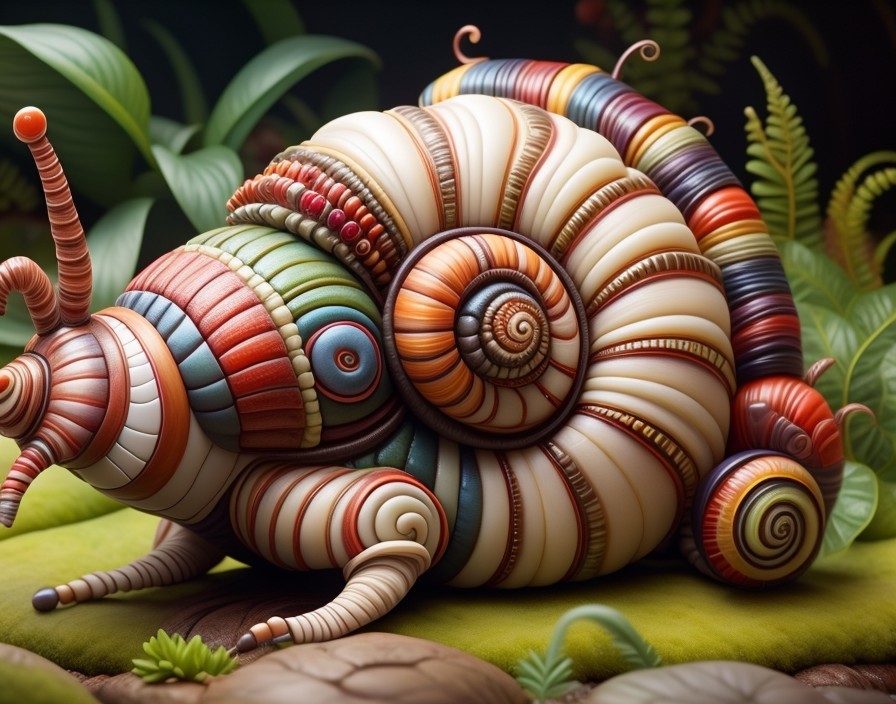 Colorful Whimsical Snail with Intricate Shell Patterns