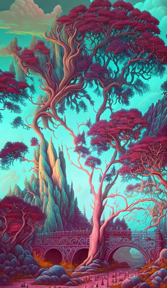 "3D extremely detailed incredible landscape in the style of Joe Fenton, with a stone bridge, a remarkable huge old oak tree, dramatic sky, fantastical, surrealistic, elegant, beautiful, high definition, striking drawing, artstation, intricate, beautiful, award winning, fantastic view, fantasy, elaborate, HDR, crisp"