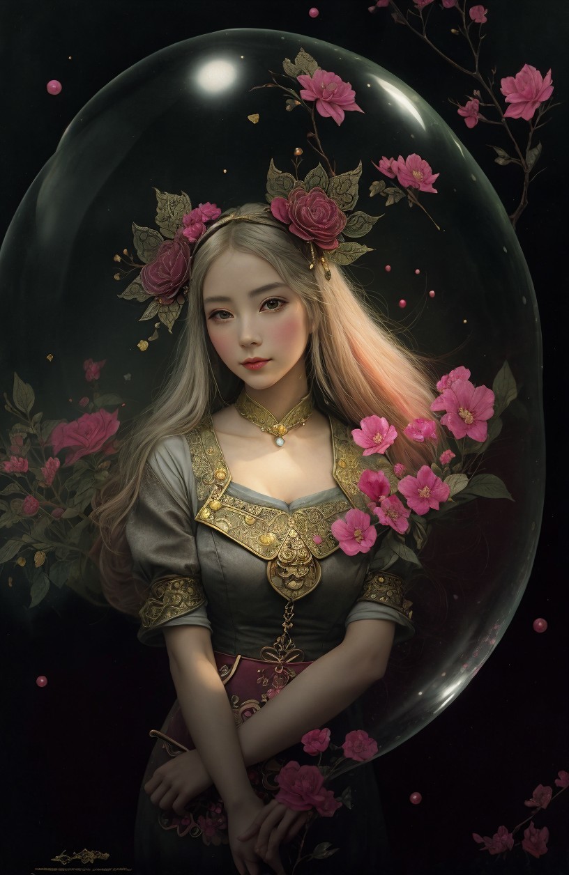 Elegant Woman in Traditional Attire in Transparent Sphere