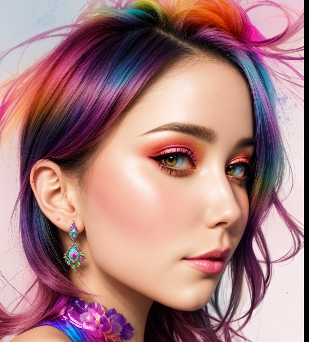 Portrait of beautiful female, wavery watercolor and ink, currents, inkpunk, , fine tiny strokes, vaporwave, dreamscape, cherry crush style, colorful strokes, stylized illustration 1.8, Style of Margaret Keane, abstract illustration style, psychpomp surrounding, 3D colourful HDR digital painting, surreal paint pour hair, beautiful, liquid mercury, ralph steadman, hues, very cute, abstract, steampunk, sensual, colorful, opp art, background twisted paint in a stunning way, , sleek beautiful head, pristine skin, line sleek, make up, style of Margaret Keane, dynamic lighting 1.7, gouache painting, concept art, high coloring 1.4, stylized illustration 1.5