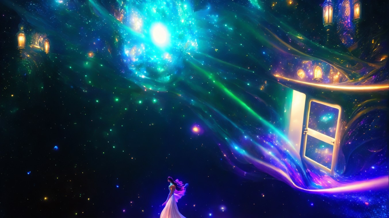 Gateway between dreams swirling lights and bodies and women dancing