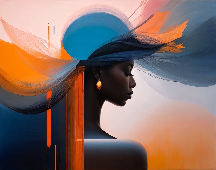 Stylized Profile of a Woman with Vibrant Hair Colors