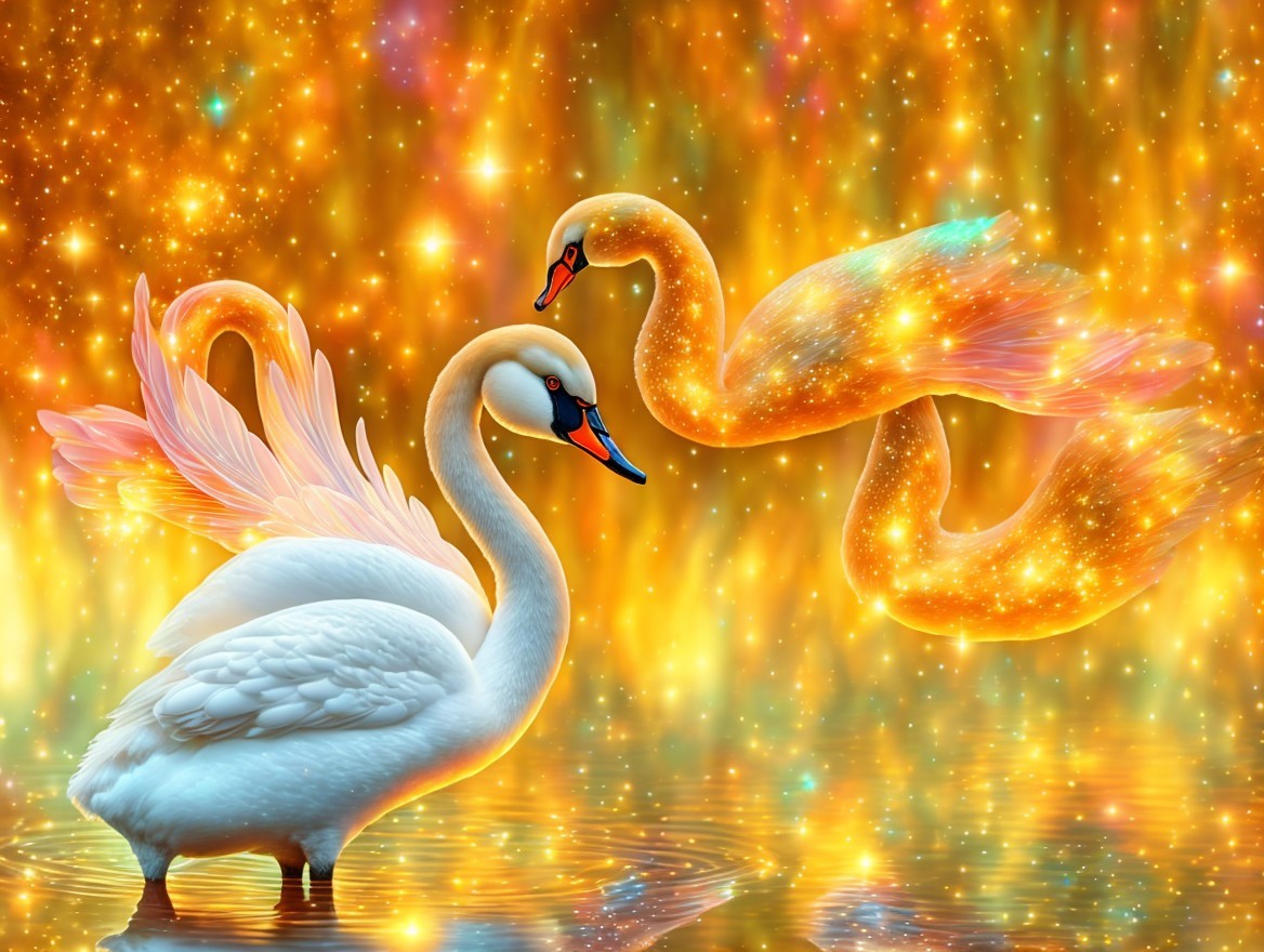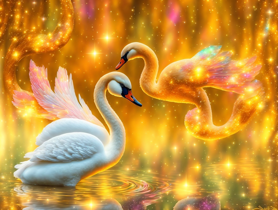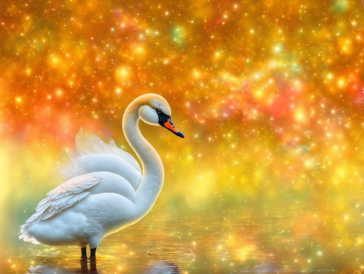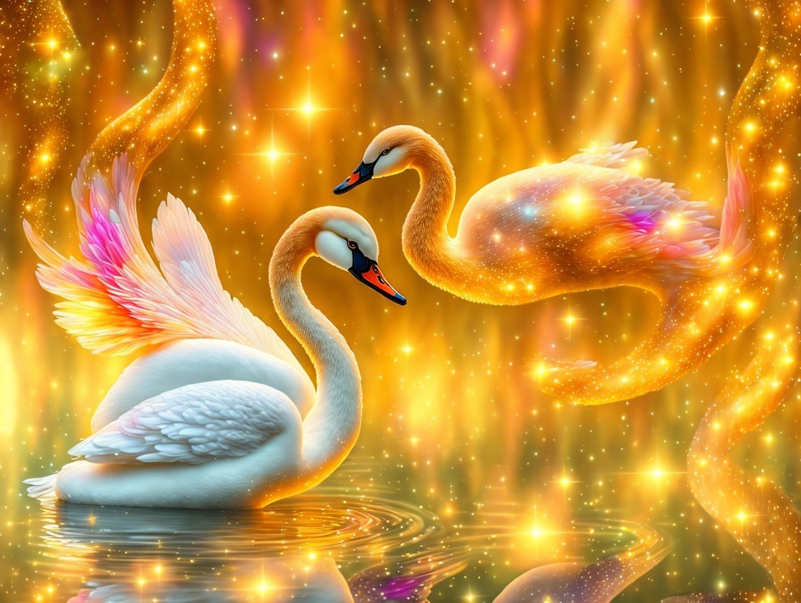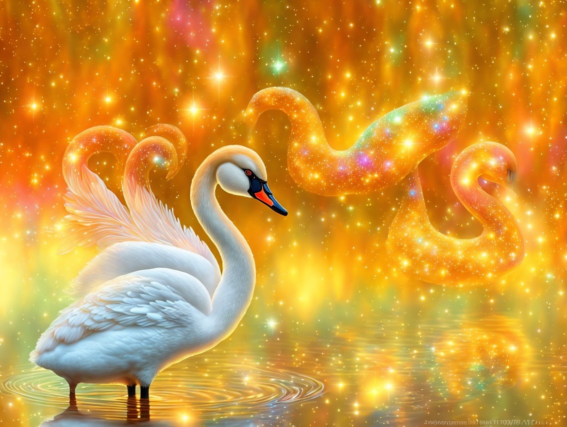 a magical swan, digital painting, dreamy, dramatic, adorable, magical, glitters, mysterious, high detail, award winning, fantasy, beautiful, colorful, very attractive, lovley, fantastic, elegant
