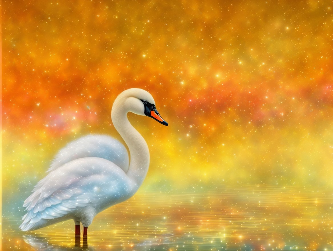 Prompt: a magical swan, digital painting, dreamy, dramatic, adorable, magical, glitters, mysterious, high detail, award winning, fantasy, beautiful, colorful, very attractive, lovley, fantastic, elegant