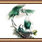 A serene illustration features a sleeping raccoon surrounded by lush green leaves and a decorative vase. The framed artwork combines nature with a touch of elegance and whimsy.